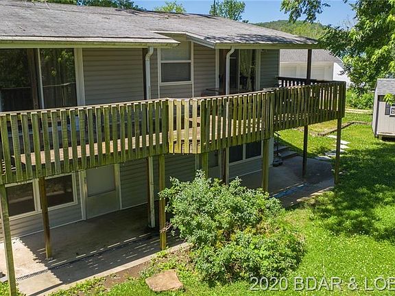 Affordable Lake view home close to Camdenton and Ha Ha Tonka State Park. Located about 5 miles to Camdenton this home features 2 living quarters. Main floor offers, 1 bedroom, 1 full bath, living area, kitchen and access to upper level deck, Lower level has 2 separate entrances, first entrance offers, 2nd living area, 2nd kitchen area and full bath. 2nd entrance offers 1 bedroom, full bath and laundry. Wall separating the 2 lower level areas can easily been removed to open it all up. Outside of home you will find nice storage shed, parking area and deck to take in the lake view. Original hardwood floors upstairs (some carpet laid over top of it) tile floors in lower level and upper bathroom.