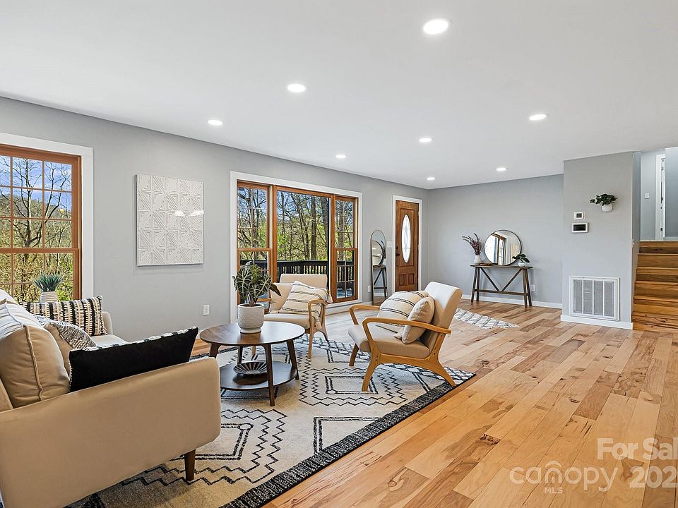 Relax and take in the breathtaking mountain views from this stunning Fairview home. Large picture windows frame the north-facing hills, filling the open-concept main living area with natural light. The remodeled kitchen features new appliances, a spacious island, and flows seamlessly into the living space. Beautiful new hardwood floors run throughout the home, adding warmth and elegance. Upstairs, you’ll find three bedrooms and two fully renovated bathrooms. The lower level offers a versatile family room or flex space with a statement fireplace and French doors leading to a second deck. A mudroom off the kitchen provides ample storage and could easily be transformed into a butler’s pantry. A bonus room with its own mini-split offers endless possibilities as an office or guest space. Just 20 min from downtown AVL, this would make a great STR opportunity!! See Video : https://listings.wncrealestatephotography.com/videos/01955957-1a68-7013-a77e-0913a5fefb02