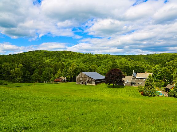 Classic renovated farmhouse set on 171 outstanding acres with distant views, two outbuildings, a 20X40 heated in-ground pool, and lots of privacy. A spacious mudroom leads to a country kitchen featuring granite counters, a wood stove, and a comfortable eating area. The living room offers wide plank floors and original beams. A convenient first floor master provides access to a nice patio and In-Ground Pool area for morning coffee. or laps to start your day. Outbuildings include a large working barn, and a separate freestanding cabin heated by a wood stove. This is a special well-maintained property that offers something for everyone.