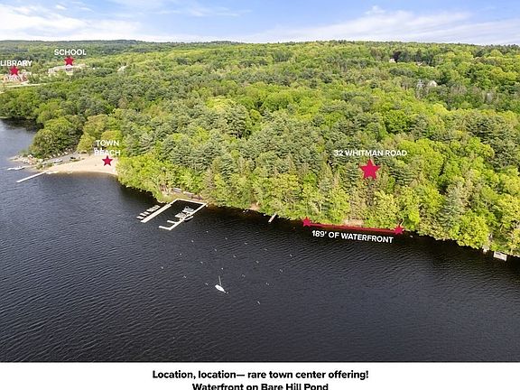 LOCATION-LOCATION-RARE TOWN CENTER offering! WATERFRONT on BARE HILL POND. Secluded wooded 2+ ACRE lot w/ 189' FRONTAGE on pond. Follow pond access lane from home down to private beach & boat launch-dock can be added. Vintage 1947 custom one-story home designed for daughter of Fiske Warren notable person in Harvard history. Inviting interior w/cottage charm in rooms surrounding stunning beamed vaulted ceiling fireplace Great Room. Wall of windows in Sitting Rm overlooking woodlands, the pond, big yard w/garden space & outdoor entertaining-play areas. Home is situated on elevated 2+ Ac lot w/ NEW 3 BED RM SEPTIC SYSTEM & offers filtered views of pond from home. Enjoy nature & the special waterfront lifestyle the pond offers-Boating-sail-power-kayak-Swimming-Fishing-Skating-Skiing. GREAT LOCATION off Pond Rd-walk-bike to top rated schools, library, ball fields, town beach, Common, General Store. On market 1st time in 56 years, home awaits buyer with vision for this waterfront treasure!