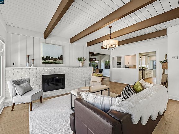 Welcome to this stunningly remodeled single-family home in the highly coveted Saranap neighborhood of Walnut Creek. Situated on a peaceful and serene street, this beautifully upgraded 4-bedroom, 3 full bathroom home has it all. The adorable white picket fence encloses the meticulously landscaped front yard and sets the tone for the entire home. As you walk inside, be greeted by high ceilings, an open layout, brand new flooring, fresh paint, designer light fixtures and tons of natural light. The living room highlights gorgeous wood beam ceilings, extra tall windows, and a cozy fireplace. Oversized dining room is perfect for entertaining and consists of five large windows and a dazzling chandelier. Perfectly appointed chef’s kitchen features stainless steel appliances, granite countertops, recessed lighting, 5-burner gas stove, double ovens, and an immense amount of cabinet storage. Main level also includes 3 sizeable bedrooms with 2 full bathrooms and laundry area. Incredibly expansive primary bedroom upstairs feels like your own private retreat as it connects to the spa-like ensuite with shower stall, tub, double sink vanity and an enormous walk-in closet. Backyard is perfect and quaint with a cute patio and grass area. Best location! Minutes to downtown, freeway access and BART.