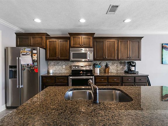 Adorable brick home located in Palmer Woods with aspacious open floor plan. Custom cabinets, granitecountertops, stainless appliances as well as an eat-in kitchenand bar that overlooks the living room. Split floor plan with alarge master bedroom and bath with double sinks, soakingtub and separate shower. Great room with gas logs and high ceiling open to the formal dining room. Extra deep extended lot that backs up to the walking trail and lake that you can see from your covered patio.