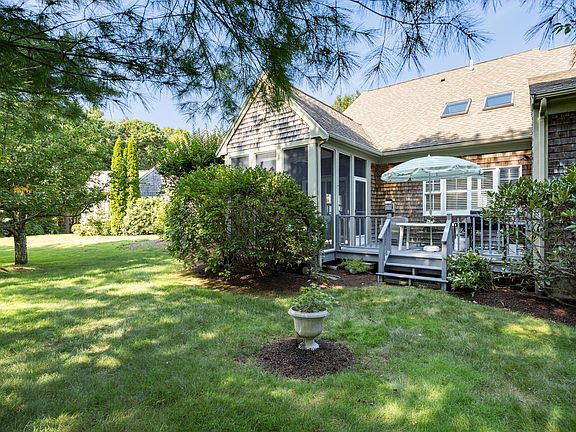 NEW PRICE!! Welcome to the beautiful community at Stratford Ponds! This original-owner townhome presents a special and rare opportunity to own very unique unit features that include a 1st-floor dining room with sliders to a beautiful three-season room attached to an outdoor wooden deck and a large backyard! This bright and cheerful well-maintained end unit also offers spacious first-floor living with a kitchen/breakfast/sitting room combo, a formal living/dining room with hardwood flooring, a primary bedroom/full bath suite with walk-in closet, a laundry room, and a powder room. The second floor offers another large bedroom, a large full bath, a loft area/office and an over-sized unfinished room that you can customize to create your own special space. This pet-friendly unit also comes complete with a one-car garage, convenient guest parking, gas heat, central AC and new and recent improvements. Stratford Ponds outdoor amenities include a community clubhouse, heated pool, tennis courts, pickleball, lovely landscaping, wandering trails and more. This best-kept secret is centrally located, providing easy access to all the amenities Mashpee has to offer.