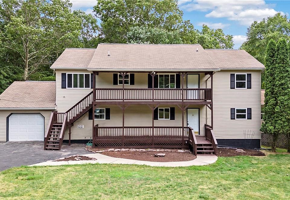 Turn-key Ready! Come see this beautiful 4-bedroom 3.5 bath detached colonial property in Jim Thorpe. This home offers lots of space! Fully remodeled with 2,704 sq ft sitting on over 1 acre of land. Lower level features a very large family room with an outside entrance. Large sunroom with a hot tub that's perfect for relaxation. 2 large decks with an above ground pool. Lots of peace and quiet that you will enjoy. 1 Bedroom with a gorgeous fully remodeled bathroom that can be used as an in-law suite. Upstairs you will find a large living room and dining room. Fully remodeled kitchen with quartz countertop and stainless-steel appliances. Large master bedroom with a gorgeous master bathroom. 2 additional bedrooms with fully remodeled bathroom in the main hallway. Electric baseboard heat. 2 attached garages with a large driveway for additional parking. Large shed in the back yard as well. 2 large front overed porches for extra space to relax. house is Freshly painted. New carpet and vinyl flooring across the entire house. This home will not last, schedule your showing today!