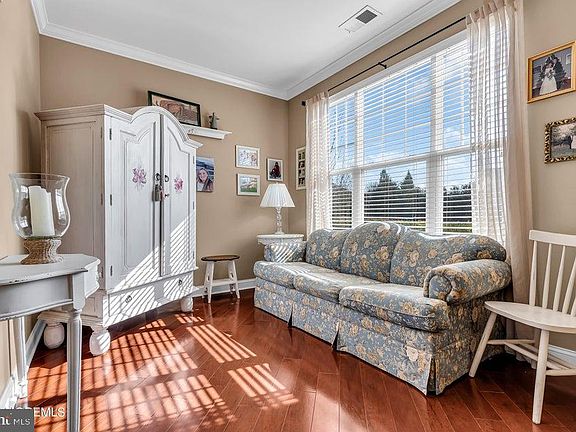 Welcome to your dream home! This stunning property boasts an open floor plan with beautiful wood flooring, high ceilings and crown molding to add that elegant touch. Step into the front sitting room for a moment of peace and privacy or gather in the spacious kitchen featuring a center island, double oven, full stainless steel appliance package and convenient coffee bar. Retreat to the inviting Master Bedroom offering a walk-in closet, double sink granite vanity and luxurious large shower complete with a full-length seat. A walk-up stairway leads to a standing room attic, offering endless possibilities for storage. Enjoy the serene views as this property backs up to lush woods and a picturesque golf course.