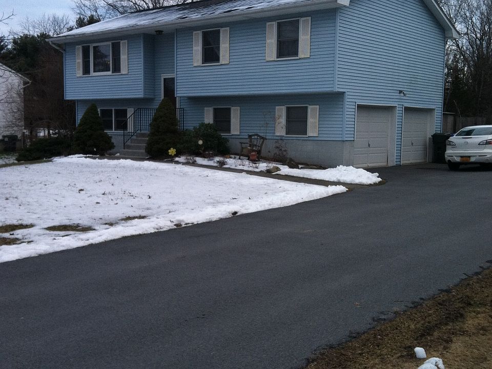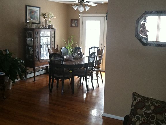 Entire interior floors solid oak wood, ceramic tile, slate. French Doors to deck upstairs off living room. French Doors to patio ground level. off family room. Wood burning stove in family room. Solar panels on south side of roof. Water softener. Electric Garage Door Opener. 2 Sheds (1 has electric power). Fenced in back yard. Electric outlet in back yard for future pool. 220V outlet in attached garage. Municipal water, sewer, garbage, and recycling. Recently repaved driveway. Newer roof Above ground home fuel heating tank in garage. Many home items potentially included in sale. For example 42" lawn tractor and stand up freezer.