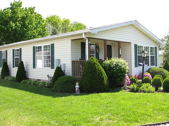 This light and airy 2-Bedroom, 2-Bath Ranch Home has been meticulously cared for by one owner and is in pristine condition. If you like a lot of windows allowing for a sunny interior, this is the place for you! Enjoy your morning cup of coffee on the front porch or set up a chaise lounge on the 10x12 side patio with a backdrop of mature trees. The master bedroom with private bath includes a two seat shower for safety and comfort, walk-in closet, linen closet and yet another large closet for storage. The following updates were completed; easy to clean laminate flooring in the kitchen and hallway, new storm door, quality carpet in the master bedroom and living room plus the home was freshly painted throughout. There is driveway parking for two vehicles side by side. The Walnut Meadows Community is not just a place to call home, it is a place to enjoy an active and carefree lifestyle. Join your friends at the clubhouse for a dip in the outdoor pool, a game of bocce or a quiet walk by the pond.