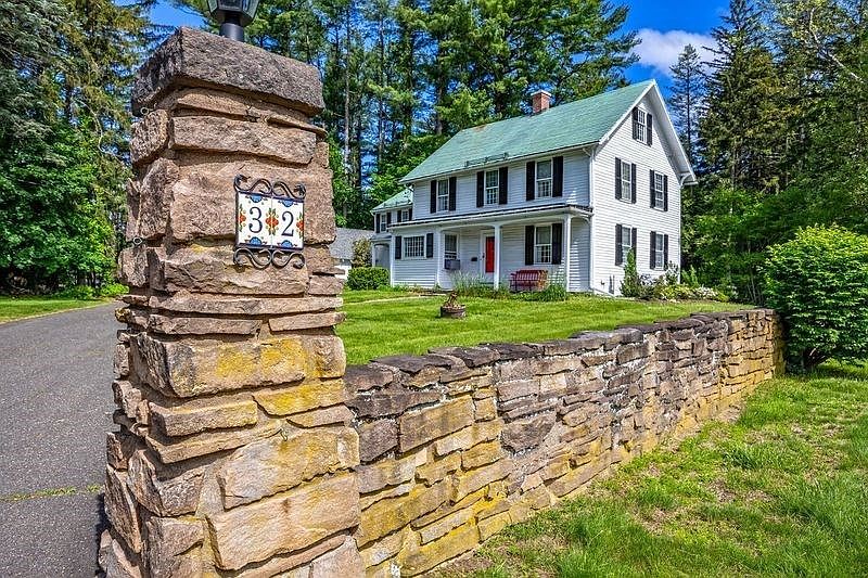 SOUGHT AFTER SOUTH HADLEY CENTER LOCATION! Steps away from restaurants, shops, movie theater, Mt. Holyoke College & Orchards Golf Club, this 4 BR, 2.5 bath Colonial gets its character from a blend of modern amenities and historical allure. Note the high ceilings, beams, wood floors, custom built-ins and wood flooring throughout.The front side entry leads to a 1/2 bath with laundry and to the well-lit kitchen featuring generous cabinetry and counter space (note Sub-Zero refrigerator). A lovely dining area opens up to a patio, perennial gardens and backyard nestled in front of a pine grove providing privacy. A formal dining, cozy den, and large living room complete the 1st floor. Upstairs, you are greeted by a versatile vestibule flanked by 3 bedrooms with ample closet space and a full bath with tiled counter and flooring. A beautiful spacious en-suite addition with vaulted ceiling, walk-in closet, 2nd closet and full bath . 2 car garage w/ terrific storage space. MOTIVATED SELLER!