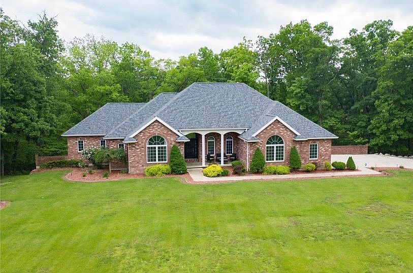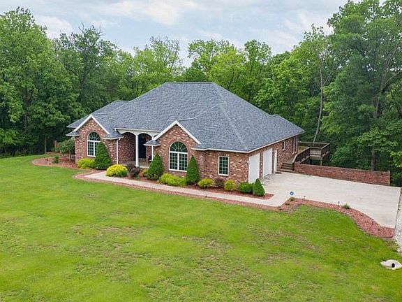 Nestled privately in Moberly's quiet Woodland Trails is this exquisite brick home. This spacious ranch style home boasts 5,200 square feet of luxury with 5 large bedrooms, a home office (could be used as a 6th bedroom) 2.5 baths, and an oversized 2 car garage all sitting on 9 acres less than 5 miles from town. Featuring 4 zone heating/cooling, security system, indoor/outdoor whole home sound system, 2 water heaters and so much more. Many updates include stainless steel appliances in 2016, a new roof in 2018, custom built-ins around the fireplace, 2 new water heaters, and a custom master closet system all in 2020/2021. The basement has been completely remodeled with an addition of two bedrooms, premium laminate floor, all new carpet, paint, and granite countertops on the bar in 2020.