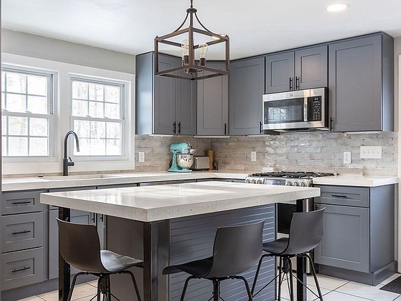 Nestled on a corner lot, this recently renovated ranch is ideally located just a short distance from the quaint Grafton Common. This adorable home features three spacious bedrooms and one bathroom with a shower/tub combo, modern vanity, and large linen closet with shiplap detailing. The beautifully updated kitchen (2024) shines with new shaker cabinets, subway tile backsplash, and an island with additional storage. The cozy living room features a fireplace and large bay window. The expansive unfinished basement offers endless possibilities. Enjoy outdoor living on the pressure-treated deck overlooking the flat backyard. Other recent updates include: roof w/ 50-year architectural shingles (2023), hot water heater (2025), 200 amp electrical panel, recessed lighting, and refinished hardwood flooring. Offers due by Monday 2/10 at 5pm.