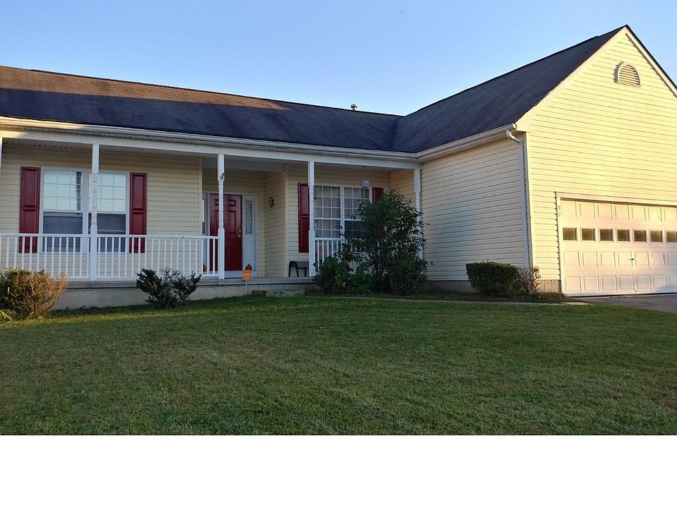 Relax on this front porch in this desirable ranch located on a cul-de-sac street, Great Room w gas fireplace and cathedral ceiling, open to kitchen and dining room. 2 of the bedrooms and 1 bath on one side of the house and master suite on the other side with 2 closets. Newer carpet, new laminate floors in kitchen and laundry room, new dishwasher. Full unfinished basement for additional space and storage plus 2 car garage. Owner is a licensed Real Estate Agent