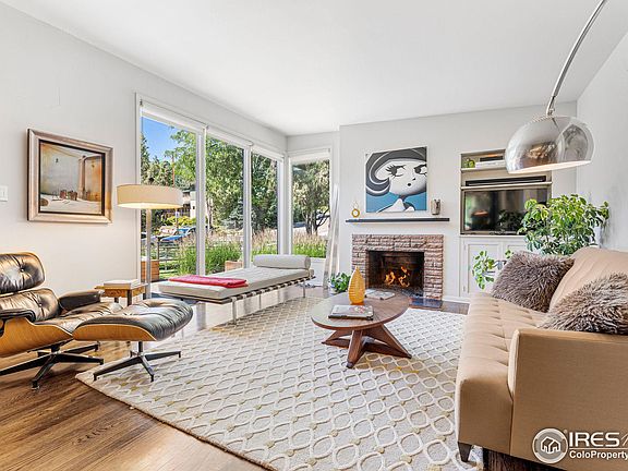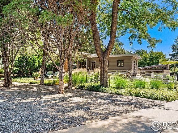 Serenity and style encompass every aspect of this mid-century modern Chautauqua neighborhood cottage. Steps away from trailheads with miles of open space and Flatiron views, this 2-bedroom, 2-bathroom, 3-car garage home is an opportunity that rarely presents itself. The attention to detail and well-planned spaces throughout this home lend to comfortable and easy living. The timeless kitchen boasting clean lines with sleek cabinetry and leathered granite countertops is just off the main living area that is framed with a wall of widows bathing the space in natural light. 2 bedrooms and bathrooms on the main floor compliment the functional and well thought out living spaces. The basement offers additional space for an office or lounging, as well as provides extra storage with an attached 1-car garage that can be used for parking or as a sports storage/training room. Visually striking front patio and landscaping designed by Blu Design Colorado with dining and lounging areas and gas fireplace exude the best of indoor-outdoor living. The private backyard with flat grassy area completes this tranquil sanctuary. The custom architectural 2 car detached oversized garage with a Tesla charging station and an abundance of lofted storage, as well as well additional side RV/trailer/car parking are a very desirable details of this property perfect for the Colorado lifestyle. This property is an exceptional lot, just one house away from the Four Pines open space trailhead is situated in one of Boulders most revered neighborhoods. Enjoy it as your stylish cottage as is, pop the top to capitalize on the Flatiron views or build your dream home in this premiere location within one of Boulders most coveted neighborhoods.