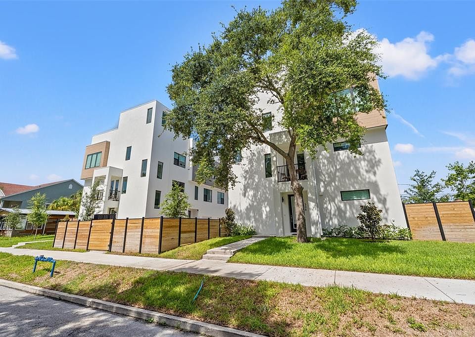 Step into a world of contemporary elegance with this brand-new townhome nestled in the vibrant heart of St. Petersburg, Florida. Designed for luxurious living, this exquisite residence boasts 3 spacious bedrooms and 3 and a half bathrooms with 2,070 square feet of living space -offering both comfort and sophistication. Enter through the inviting foyer to find a generously sized bedroom complete with a full ensuite bathroom. This space is perfect for guests or a private home office, featuring low-maintenance luxury vinyl plank (LVP) flooring that extends throughout the home, combining style with practicality. Ascend to the primary floor, where natural light floods an open floor plan designed for both everyday living and entertaining. The state-of-the-art kitchen is a culinary delight, equipped with top-of-the-line appliances, a sleek breakfast bar, Quartz countertops, and an elegant dining area. The adjoining living room provides a perfect space for relaxation and gatherings, while a conveniently located half bath adds to the functionality of this floor. The third floor is dedicated to the serene primary suite, featuring a spacious walk-in closet and a luxurious bathroom with dual sinks and a walk-in shower. A third bedroom, also generously proportioned, Washer & dryer, and a full bathroom complete this floor, offering ample space and convenience for family or guests. Unwind and entertain in style on your private rooftop oasis. With a wet bar conveniently located nearby, you can easily prepare your favorite beverages before stepping out to the wrap-around rooftop deck. This outdoor haven is perfect for soaking up the Florida sun by day and enjoying the stars by night, providing an unparalleled setting for relaxation and entertainment. Enjoy the best of St. Petersburg with this ideally located townhome, just 10 minutes from Tampa Bay Rays Stadium, 3 blocks from Central Ave and the vibrant downtown area. Revel in the proximity to the city's finest dining, speciality shopping, and cultural attractions, ensuring you are always at the center of the action. There's also a private 1-Car Garage to protect your vehicle from the sun and enjoy additional storage space with an epoxy-coated garage floor. New whole house water filtration system included. Water, trash, pest control, yard maintenance and security system included. A/C can also be controlled by wifi. Experience the pinnacle of modern living in this stunning new townhome while enjoying the vibrant culture of St. Petersburg.
