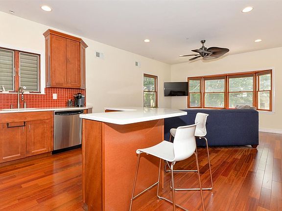 DUPLEX-SIX YEARS YOUNG! METICULOUSLY MAINTAINED! Located in downtown Union City! First floor boasts nice size gourmet kitchen w/cesarstone CT, glass backsplash, SS appliances, center island, overlooking LR, Full main bath, 2 bdrms including MBR suite with WIC & MB! Downstairs leads to lg FR w/sliders which WO to exclusive yard, ground level also includes laundry rm and access to exclusive garage & additional spot in driveway! Beautiful DK wood flooring throughout! Minutes away from Hoboken! Transportation to NYC just around the corner!