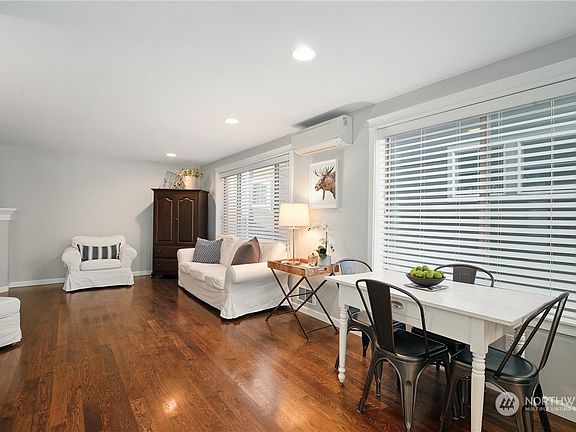 Set off the street in a quiet corner, this newly renovated townhome will not disappoint! Features include beautiful hardwood floors, updated kitchen & baths, open living/dining space with corner fireplace, A/C, and garage. The lower-level den makes a great WFH space and leads out to a spacious fenced backyard patio with hot tub and K-9 grass for your furry family members. On the upper level, there are two bedrooms with a full bath and laundry. Convenient to Jackson Place, 5 different bus routes, light rail, freeways, downtown, coffee shops, bakery, Amazon Fresh, dining, breweries and so much more.