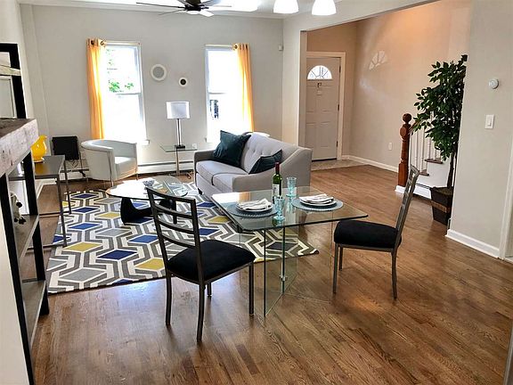 Great opportunity to live in a totally renovated 2 family home in Downtown Jersey City, at the price of a condo. Just a few blocks from the Grove Street Path Train, Newark Ave Pedestrian Plaza, Restaurant Row, Nightlife, Shopping, etc this 2 family home also has a modern studio rental unit plus 1 car off street PARKING!! Owner's duplex consists of 3 bedrooms, 2 full bathrooms, a home office and an open, flowing kitchen/dining area. Designer kitchen features 42 inch Fabu wood cabinets with crown moldings, Quartz Caesar stone counter tops, and stainless steel appliance package. Bathrooms each have a bathtub and Portuguese imported tiles. Also featuring Refinished oak hardwood floors throughout, exposed brick chimney, crown moldings, ceiling fans, laundry and a private outdoor deck. Turn Key Home!