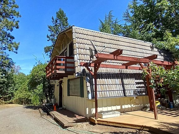 The Swiss Chalet House, designed by a Swiss Architect and sitting on over 6 acres with 2 legal tax lots, sits this Majectic and ''Rustic Diamond in the Ruff'' on a one acre lot. Possible 2nd split on the 5.33 acre lot, there's a lot of options here! This home takes you back to the yesterdays of the true Old Oregon Dream. Vintage construction of large open wood beams and wood accents throughout. Huge 2 story picture windows with stunning views of the lush Rogue River Valley and farm lands. Open loft is the large primary bedroom and bath with walk in closet space. A nice private back deck for relaxing with a beautiful wooded view off the primary bedroom. Oversized living room. One bedroom and bath downstairs. Spacious kitchen with lots of cabinets. Laundrey in garage area. A very private setting with a large wrap around deck. Circular driveway. Home could use some updating and repairs but this is one to see and make it your own. Located near Rogue River parks. Sold as-is. Good Bones