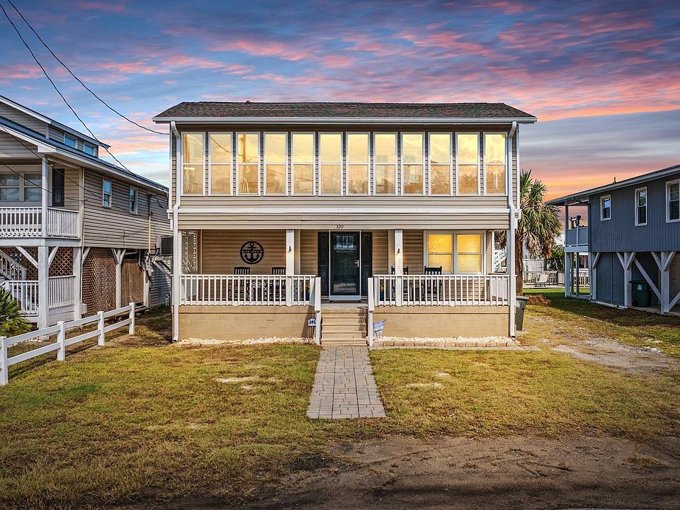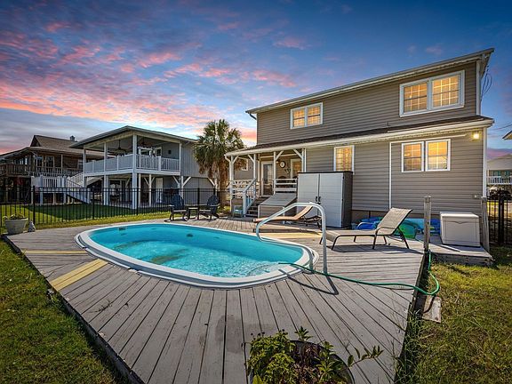 Welcome to a little piece of Paradise! Discover the best of coastal living in this completely remodeled and tastefully furnished 4BR-3BA beach home boasting a prime location. Located on a channel, with private boat dock, this residence is just a few steps away from the blue Atlantic Ocean and has an inground pool in the backyard. Since 2018, the sellers have renovated the entire home. The perfect kitchen features newer cabinetry, ample workspace on gorgeous quartz countertops, stainless-steel appliances, and a finishing touch with tile backsplash. All three bathrooms have undergone stylish remodeling with new vanities, fixtures, and tile. The master bath and one bath upstairs have a walk-in shower. The master suite on the first floor is beautifully decorated, complete with a cozy sitting area. For your convenience, beneath the staircase, you'll find a roomy storage space. Located on the second floor are three additional bedrooms and two full bathrooms. Savor the end of a day on two spacious porches: one at the front and another on the second floor, known as the Carolina Room. This room, awash with natural light, provides the ideal setting for reading, playing games, or simply unwinding. The backyard is fully enclosed with a fence and an in-ground pool surrounded by a wooden deck. Ideal not just for its coastal charm but also for its convenience, this property is situated just minutes away from a variety of shops and an eclectic selection of restaurants in NMB/Cherry Grove. All measurements are approximate, but not guaranteed.