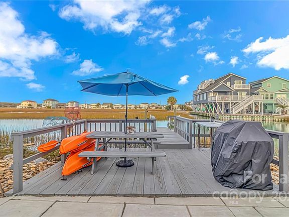 This dreamy upgraded home has majestic marsh views, Atlantic ocean access and *multiple opportunities*! Enjoy this luxury water front living as a primary home, secondary home, income property or any combination thereof. With a first floor living space built to perfection containing a private bathroom, kitchenette, bedroom and living space- all completed with the detail and beauty of an artist. Head upstairs to the main level of this tranquil waterfront home and relax in a light and airy living space that flows seamlessly into an open kitchen with bar seating, 3 spacious bedrooms and another full bathroom. Head outside and the best is yet to come- these views are what waterfront living is all about. Enjoy multiple patios and outdoor living spaces to take it all in (did we mention the custom fire pit, the meticulous stonework and the boat deck?) This gem is a must see. Hurry up and get here so you can slow down and relax.