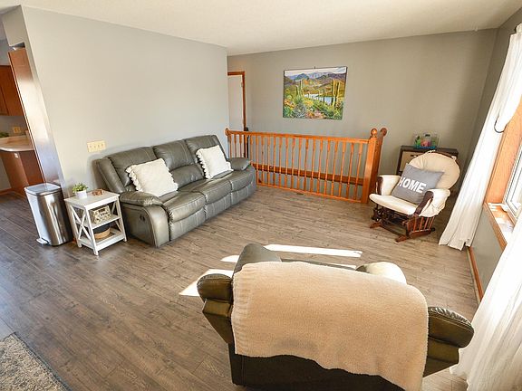 This recently updated 3 bedroom, 2 bathroom home features a finished lower level, 2-car garage, new washer/dryer, maintenance-free vinyl siding, back deck and patio, and a new wooden privacy fence! The main level has a spacious kitchen, two bedrooms (one primary) with walk-in closets, and full walk-thru bath with storage off the primary bedroom. The lower level features a third bedroom or multi-purpose room and an entertainment area, spacious ¾ bathroom, and newer AC/furnace and washer/dryer. New flooring throughout home (2023 main level), along with new blinds and updated paint. Home exterior features a front porch and a back two-tiered deck, back patio, vinyl siding, gutters, rock landscaping and mature trees on a 0.28-acre lot. Shelving in garage stays with home. Conveniently located in Maple Lake close to retail, schools, parks, entertainment, and more! One year home warranty provided!