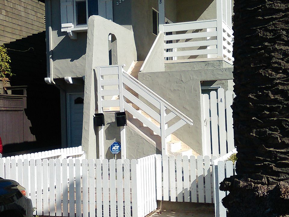 Upstairs, fireplace, spacious balcony, tile throughout the unit, washer and dryer hookups. Walking distance to the beach !