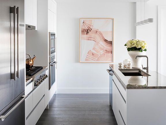 This sun-drenched 3-bedroom, 2-bath home features 1,555 sq ft of open living space and a 276 sq ft private terrace, all facing south with uninterrupted views of Midtown Manhattan and the Hudson River. From the bedrooms to the living room, natural light pours in all day.