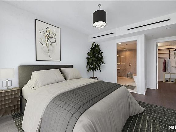 Enjoy full-service, amenity-rich living in this stylish 2-bedroom, 2-bath condo at One Park. As a resident, you'll have access to a full fitness center, yoga room, heated indoor pool, golf simulator, basketball court, children's playroom, rooftop deck, garage parking, and 24-hour concierge and doorman service. The building also features a shared home theater, furnished guest suites for visitors, and a sleek resident lounge—bringing comfort and convenience to a whole new level. The home itself offers a functional layout with wide-plank white oak floors, a private balcony, and clean, modern finishes throughout. The chef's kitchen includes Thermador stainless steel appliances, quartzite countertops, and custom cabinetry, while the spa-style bathrooms feature elegant porcelain tile and custom vanities. Luxury, lifestyle, and location—all in one of North Jersey's most desirable luxury buildings.
