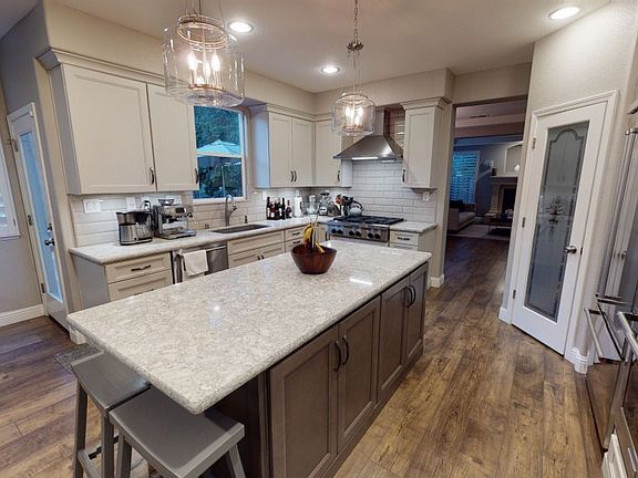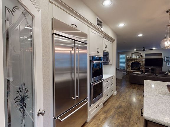 Gorgeous home with tasteful upgrades and lavish amenities throughout. This home has five bedrooms plus an office and a loft, five bathrooms, three fireplaces, a sparkling pool and spa, fresh landscaping and built-in outdoor cooking area. The kitchen is a chef's dream with quartz countertops, subway tile backsplash, stainless steel appliances and lovely light fixtures. Office features coffered ceilings and French doors. Downstairs bedroom and full bath provide a great area for in-laws or guests. The bar, formal dining and living area provide ample room for entertaining the most discerning of guests and the master sitting room and fireplace provide a welcoming retreat at day's end. Master bathroom has a jetted tub and spacious shower. This is a Smart home; a/c, alarm, pool and lights can be controlled by your phone. Don't forget to click on the link for the 3D showcase video tour!