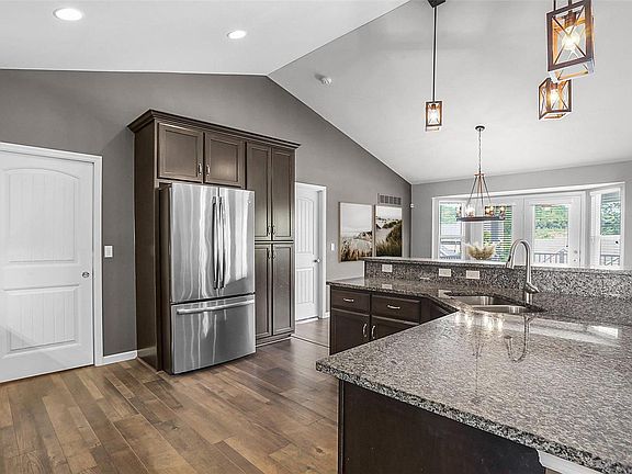 Stunning open floor plan on nearly 1/4 acre! The heart of this home is the kitchen featuring granite countertops framed by espresso cabinetry & stainless appliances. The luxury laminate flooring provides a modern touch & the abundant windows allow sunshine! The fireplace anchors the great room & built-ins create an inviting atmosphere. Through the dining area French doors, step onto an amazing, covered maintenance free deck! What a wonderful spot to enjoy summer cocktails or morning coffee! The primary suite has a tray ceiling, walk in closet, bay window & luxury bath with garden tub, separate shower & double sink vanity. Convenient main floor laundry. The spindled staircase takes you to the lower level with 4th bedroom & 3rd full bath. The remainder is ready for finishing & walks out onto a large patio area for even more outdoor living space! The neighborhood is a dream offering a large community pool with a shaded outdoor seating area and tons of community events throughout the year!
