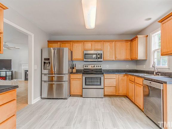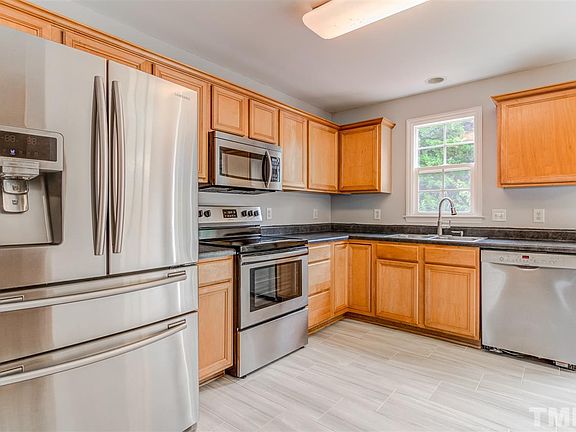 Beautiful move-in ready home in convenient Wake Forest location! Fresh paint, brand new porcelain tile in kitchen & master bath, & gorgeous bamboo hardwoods throughout-NO carpet! Spacious eat-in kitchen has new countertops, stainless steel appliances incl new range & gorgeous tile! Master suite has vaulted ceiling, walk-in closet & tiled bath w/dual vanity, garden tub & sep shower. Huge bonus w/abundant sunlight could be 4th bedroom! Deck overlooks huge flat fenced backyard w/tree buffer for privacy!