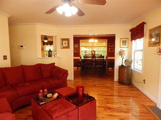 Mint condition 3 bedroom 2 1/2 bath home plus bonus room. Hardwood floors in great room, dining room and kitchen. Ceramic tile in bathrooms and newly painted throughout. Nice covered deck off of kitchen overlooks fenced backyard with running creek. Perfect place for your morning coffee. Crown molding throughout downstairs with pretty fireplace in great room. Newer stainless steel appliances and kitchen has pass through to great room. Master bedroom has trey ceilings and nice master bathroom with garden tub and separate shower.