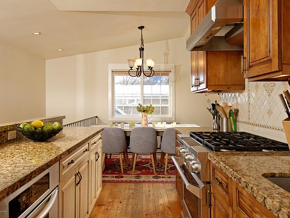 Conveniently located near all of the amenities of Willits and Whole Foods, this lovely home features a galley kitchen with reclaimed oak floors, a new 6 burner Kitchen Aid cook top purchased 6 months ago, and slab stone countertops. There are 2 master suites with ensuite baths, a lovely downstairs family room that has custom knotty alder built in cabinets with a built in 62 inch Sony flat screen TV and wet bar. Home has radiant heat floors, 2 hot water heaters, a water softener and reverse osmosis system. Yard is fully landscaped with a sprinkler system in both front and back. Right on the school bus route, this home has easy access to Crown Mountain Park and the Roaring Fork River. There is a built in doggy door to the large fenced back yard. MOVE IN READY! Garage plans in documents