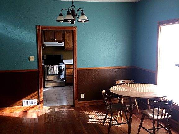 Nice 2 bedroom, 1 1/2 bath home with 9' ceilings, new paint, upgraded kitchen cabinets, open floor plan with all new electrical wires and electrical panel. Original hardwood floors and beautiful original woodwork. Detached two car garage/metal building, insulated with electric door opener and electrical outlets. Landscaped yard with sprinkler system and 6' privacy cedar fence.