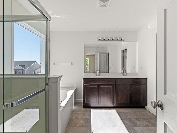 New McBride Homes Royal II 2-story, 4BR 2.5BA, ready in October! Gorgeous farmhouse exterior! Open floorplan w/wood laminate flooring & 6ft windows throughout. Lux kitchen w/center island/breakfast bar, dark 42” cabinets, quartz countertops, & stainless GE appliances. Breakfast rm opens to the backyard w/ sliding glass door. Spacious family rm w/window wall, formal dining, laundry & powder rm complete the main level. Open spindled staircase to 2nd floor. Upstairs: master suite w/walk-in closet, private lux bath w/double bowl vanity, tub, enclosed toilet, & walkin shower. Plus 3 extra BRs & hall bath. Matte black lighting/plumbing fixtures, dual zone HVAC, LL ¾ bath roughin. Home pricing advertised is lowest price including all of Seller’s available promotions. Prices, financing, promotion, & offers subject to change without notice. Some promotions & offers do include using the Seller’s preferred Lender & Title Company. Always see the community sales consultant for the latest details.