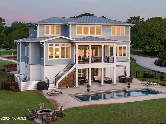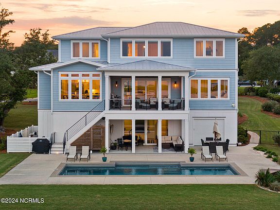 Coastal Elegance has taken a whole new meaning in the form of 320 Ballast Point Road in Hampstead, NC. This incredibly well built home, framed by a centuries old Live Oak, sits on just under a 1.5 acre lot, designed by Glover Design, LLC and brought to life through meticulous construction and standards of PBC Design and Build. With the potential of up to 5 bedrooms, vaunting 4 full baths and 2 half baths, this coastal dream home offers adequate space and design for all of your lifestyle needs. The subtle entrance into this home leads you straight into the grand living room that captures light from sunrise to sunset, which overflows into your custom kitchen crafted by Hollngsworth cabinetry with upgraded appliances, quartzite countertops, and luxury cabinet organizer Kesseböhmer, USA installed in every cabinet. Your primary suite greets you with unparalleled views of the ICWW and a custom designed primary bath with unique alder wood cabinetry, imported porcelain tile, and motion activated under cabinet lighting. Take your private lift to the third floor where sight and sound are perfectly balanced in the home's custom media room complete with Dolby Atmos surround sound, sound dampening interior walls, and custom built ins. Descension to the ground floor to your in-home gym that overlooks the custom pool and fire pit. Fulfill all your boating dreams with a unique marina experience that includes one of ten 25 foot boat slips located at Marker 86 Marina just seconds from this property, within the neighborhood. This includes one private parking space, a 10k lbs boatlift with water and electric, and 24 hour deep water access to the ICWW. Owners share in the luxury of owning in this private marina without the concern of monthly HOA dues, expenses are assessed only when needed. Elevate your coastal lavish waterfront living to the highest level with this one of a kind masterpiece located in one of Hampstead's most desirable luxury home enclaves of Sloop Point Plantation.