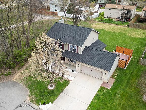 This recently updated 2 story home is nestled at the end of the street and offers a bit of urban solitude. The paver patio with stylish privacy walls and fire pit is the perfect place to end the day. There is a welcoming full-width front porch opening to a traditional floor plan with an open foyer and powder room right there. The great room w/gas fireplace opens to the modern kitchen and breakfast area and there is a great view out back to the large flat yard. There is a convenient utility room/entry from the garage. The formal dining room is great for entertaining. 3 bedrooms and 2 full baths upstairs are perfectly oriented. The owner’s suite features fresh updates and the master bath pops. The full unfinished basement adds tons of potential. Seller has done numerous updates since buying it in 2022. Close to schools, parks, shopping, public transport, Scott Air Force Base and STL.