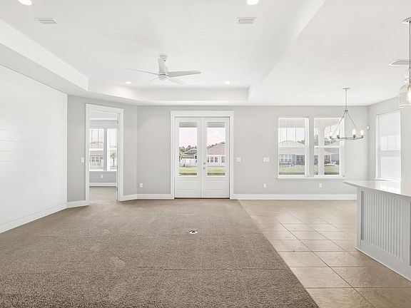 - Interior: Lighting Recessed, Floor Tile, Floor WW Carpet, Pantry, Kitchen Island, Security System, Ceiling Tray/Cofferd