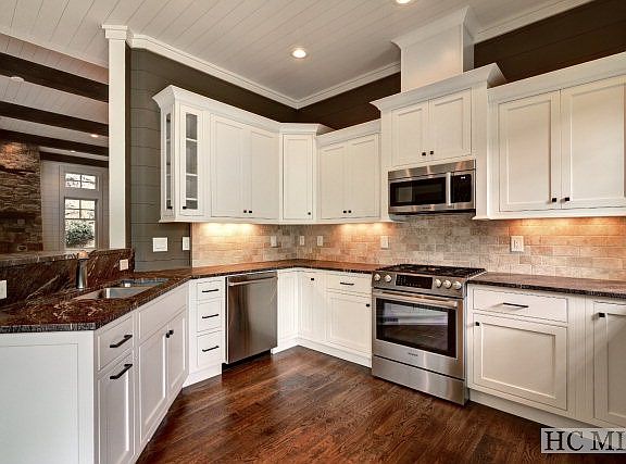 This beautiful free standing condominium home is ready to move into! It has a spacious open floor plan all on one level with an attached two car garage. Tennessee stacked stone fireplaces on both the grilling deck and in the living room are spectacular. Wood burning fireplace inside and gas logs on the outside deck. 12 foot painted wood ceilings with dark beams in the living room, and cathedral ceiling in the master bedroom give it a spacious look. Beautiful oak flooring throughout the living area and master bedroom. The master bathroom has heated tile floors. The custom kitchen has Bosch appliances and granite counter tops. The deck has an outside grilling kitchen for entertaining. Beautiful hardwood floors and painted wood walls and ceilings. Furniture may be purchased separate from the purchase of condominium home. Golf membership initiation fee included in the sales price. The Birches community has underground wiring and lush landscaping. Positioned between Highlands and Cashiers, Wildcat Cliffs Country Club offers a wide array of amenities, including a superbly maintained 18-hole mountain/valley golf course, Har-Tru tennis courts, croquet, fishing and hiking trails. The 21,000 square foot clubhouse features full-service dining, an indoor swimming pool and a state of the art fitness center. In order to purchase property at Wildcat Cliffs Country Club, one must first become an approved member. Membership is by invitation only. The beautiful furnishings can be purchased separate from the sale of the home.