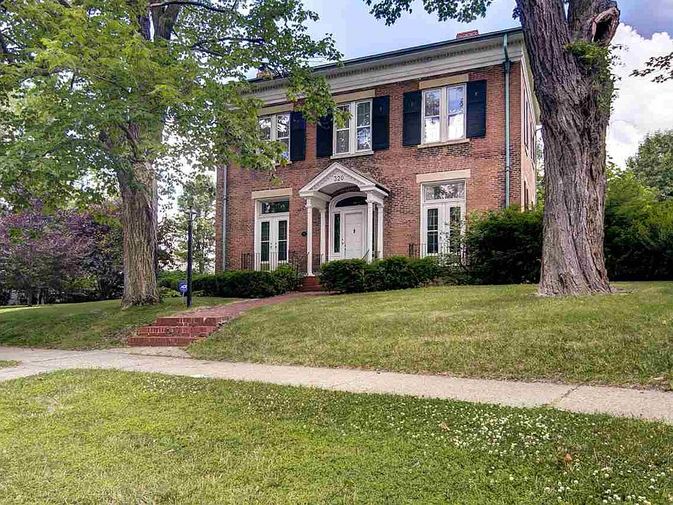 $10,000 PRICE REDUCTION! History & Character surround this exquisite Colonial Home. Commonly known as the Frederick Home, much of the historical integrity has been retained. Spacious Living Room w/beautiful wood burning fireplace & French doors to sunlit 3 Season Porch. Formal Dining Room w/original slate floors. Eat-in Kitchen w/built-in cabinetry & Breakfast Nook. All appls stay. Cozy Den with built-in bookcases & wood burning fireplace. Impressive Master Bedroom Suite features full Bath, his/hers closets, separate Sitting Rm. 2 addt'l BRs up - each w/private Bath access. Hardwood floors & 11 ft ceilings thruout. Expandable attic & full basement. Updated furnace, C/A, electric, mechanicals. Oversized 1.13ac lot w/an abundance of mature trees. 3 - 2 car detached garages. Walking distance to downtown. A true historic treasure!