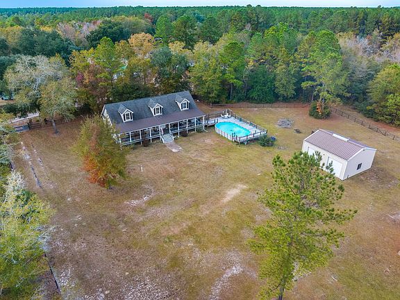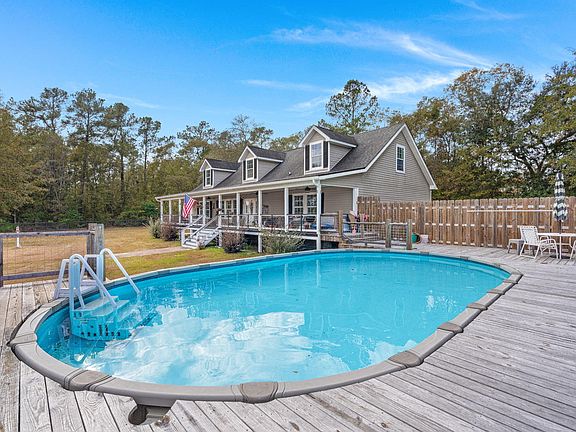 Welcome to your country living dream! You will have 10 whole acres to play with, a large yard is already cleared and fenced in, the remaining acreage is wooded and backs up to US Forest Service land. The home has 3 bedrooms and 2 bathrooms all on the main level. The unfinished upstairs is ready for you to create additional living space or keep it as storage. There is a detached shop with 2 bays, a full porch overlooking your beautiful yard attached to a pool deck and pool, and even a screened in back porch. This property has it all! Just 15 miles from Moncks Corner and 20 miles from Wando!