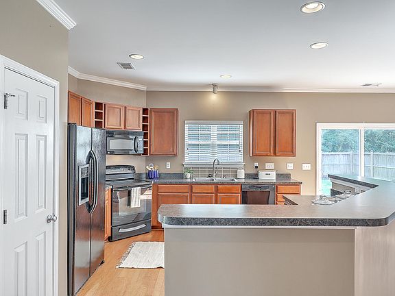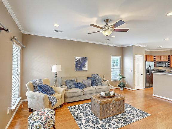 This charming home located in a quiet cul de sac features an open floor plan with high ceilings, gorgeous hardwood floors, spacious living room area and a separate dining room that overlooks the backyard. The open kitchen boasts a large island and tons of counter space. Master Bedroom has a tray ceiling, large walk in closet with a bathroom that feature a separate toilet room, double vanity and a tub/shower combo. All bedrooms showcase large walk-in closets and have plenty of storage space! Laundry room is located upstairs for convenience and has a door to an attic for extra storage. Enjoy privacy in your backyard which backs up to the woods!