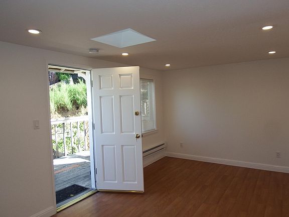 This sunny upper unit is part of a 4-plex in a quiet, leafy neighborhood in Gerstle Park. Bask in the sunshine on your deck! Newly remodeled eat-in kitchen with dishwasher, granite countertops, garbage disposer, smooth top range, stainless steel hood. Hardwood floors, refurbished bathroom. This apartment gets very good light. Also an on-site laundry and extra locked storage area. Tenant pays PG&E. Water and garbage are included.