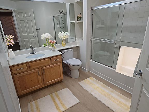 Fan and toiletNew flooring and baseboardsStainless steel appliancesLed lightingBathroom lightingBedroom walk-in closet