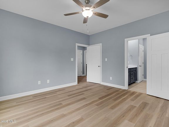 The primary suite is on the main level and includes a tiled shower in the ensuite bath. Head outside to the covered back porch and enjoy the peaceful setting of Camp Creek, all just moments from the shops, dining, and community events of Oriental.