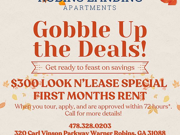 With all these great features and more, Robins Landing is the perfect place to call home. Come visit today and discover all that we have to offer!