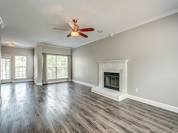 Charming all brick home w/ convenience to the interstate! This home features light, bright open space w/ modern hardwood laminate flooring, brand new carpet, large bonus room/media room complete w/ movie projector, gas fireplace, tray ceilings in master, custom shelving in master closet, and privacy fence. Kitchen comes w/ ample counter space, stainless appliances, & an island that features a built-in wine cooler. Backyard is a summer dream w/ a large stone fire pit area w/ brick pizza oven.