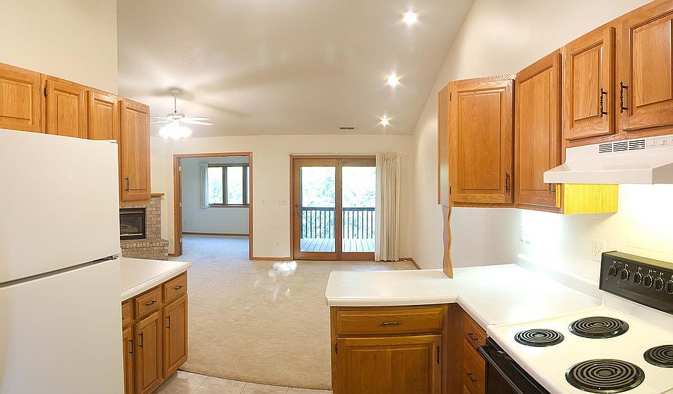 Enjoy a spacious 2-bedroom Duplex with an OPEN CONCEPT living room-dining room-kitchen area. This sunny living area has a cathedral ceiling. A huge kitchen provides lots of storage with many cabinets and tons of counter space. Relax in the living room with a gas fireplace. Right off the living room, through French doors, is another room, which could be a HOME OFFICE or DEN. LARGE MASTER BEDROOM includes his and her closets. A SECOND large BEDROOM has a generous closet. The bathroom includes both a jet tub and a shower. View a grassy yard and trees out of the windows, instead of viewing a next-door building. You have a private entrance, and a deck overlooking a relaxing backyard. In addition, there is an attached GARAGE for parking your car, and a place for more storage. Just park your car and walk from the garage into your apartment. Free LAWN CARE and SNOW REMOVAL. A cozy community with great neighbors! Two Iowa City BUS ROUTES are nearby. 1300 Square Feet of enjoyable living space. Pictures may be from similar units (custom built buildings). Application Processing fee is $35. Renter pays $1250 plus utilities. Security deposit is $1250. No smoking on property. Sorry, no pets, in accordance with local and federal laws.