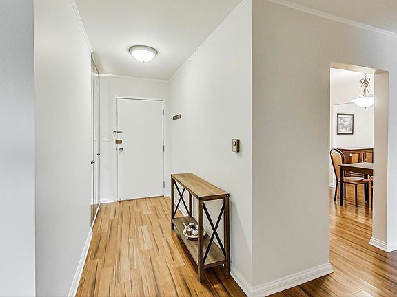 Welcome to luxurious living in the highly sought-after Claymoor Condominium Development, nestled in the affluent neighborhood of Hinsdale, IL. Surrounded by a blend of old and new estates typical of this prestigious area, this condo offers a park-like setting with the youthful ambiance of an ivy league college campus. As you approach, the lush grounds adorned with majestic oak and maple trees, complemented by vibrant pachysandra ground cover, evoke a sense of timeless elegance. The entrance, adorned with brick, stone, and glass, exudes warmth and sophistication, reminiscent of a mid-century country club. Safety and security are paramount, with a locked atrium providing access to the elevator and ensuring peace of mind. Ascend to the third floor and step into a beautifully updated 2-bedroom, 2-bathroom condo boasting a welcoming foyer revealing warm-colored bamboo flooring throughout. Every detail has been meticulously attended to, from the new kitchen installed in 2021 featuring updated cabinets, modern appliances, and sleek white quartz counters, to the recently redone balcony offering a serene outdoor retreat. Updates abound, including a new hot water heater from 2022, updated fire alarm system, and youthful windows and sliding doors ensuring efficiency and functionality. Laundry is free and there is a very accommodating laundry facility on the main level with multiple machines to hurry-up the laundry efforts. Beyond the confines of this exquisite residence, Hinsdale beckons with its natural beauty, hometown charm, and friendly community atmosphere. Just 20 miles west of downtown Chicago, this village offers the perfect blend of suburban tranquility and urban convenience. Award-winning schools and easy access to neighboring towns further enhance the appeal of this exceptional location.