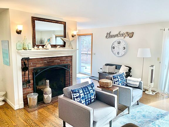 For a 3D tour go to www.CapeCodExperience.com/for-sale This home will go back on MLS in September when rental season is over. Agent contact: Jessica Larsen 774-722-4631 or jessica@capecodsquad.com Located just a 2 min. walk to Chipman's cove or another 12 minutes to the bay beaches, this is either the perfect turnkey primary or 2nd home, fully furnished and accessorized {Move right in!} or a cash flowing A+ vacation rental business ready to transfer to the right person looking to take over. It has solar panels to support the all electrical systems... No gas or oil here! It has 2 energy efficient wall mounted heat pumps for the fall, and oil filled electric baseboard heaters for the winter on 8 zones, so you only heat what you use. Within walking distance of water and nestled in a wooded lot, this 2100 sq ft home is meticulously appointed and well maintained and has an open floor plan with hardwood floors throughout. The main L/R and kitchen upstairs open to the wrap around deck. Features include a fully equipped kitchen with a modular electric Jenn-Air cooktop, stainless appliances, granite and butcher block counters and a 4 seat bar and a wood burning fireplace in the living room. The private remodeled en suite master has a deep jetted tub, stackable LG W/D and the 2nd bath, also remodeled, has a deep soaking tub. Downstairs is a walkout basement with 2 large bedrooms, a bonus room or office, a large den with a propane fireplace, and a remodeled .5 bath. The den opens up to a covered large patio with an outdoor shower just around the corner. There is an over sized 2 car garage w/ huge 425 sq ft finished bonus space above, perfect office or artist's studio. The huge 2 car garage has even been partitioned off to rent one side as a storage unit or private garage. Just a 20 min. drive to Provincetown, 15 minutes to Truro Vineyards, 2 min. to Wellfleet's W.H.A.T. theater or the start of the bike path or just a few minutes drive in to downtown Wellfleet, this home's location can't be beat for this price range. This home is being sold fully furnished and accessorized along with the opportunity to purchase the LLC, logo, websites, the 15 year history of tenants, contacts, ads and reviews. Used as a vacation rental, this home will pay for itself right from the start.