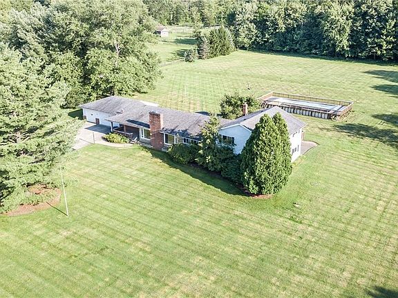 Welcome home to this sprawling Ranch/Split Level home on 5 acres of land. This home offers 5 bedrooms and 3 full baths. The main part of the house is a Ranch with a full basement and the addition is a split level which was added in 1974. The main home has a large living room with wood burning fireplace, picture window, eat in kitchen with appliances and door leading to an enclosed porch. First floor office, two bedrooms and full bath. The addition has a large master bedroom with door to a deck, two additional bedrooms and full bath. There is a lower level family room with wood burning fireplace, full bath and door leading to a patio and rear yard with above ground pool. There is an attached 3 car garage, 2 furnaces and 2 A/C units.